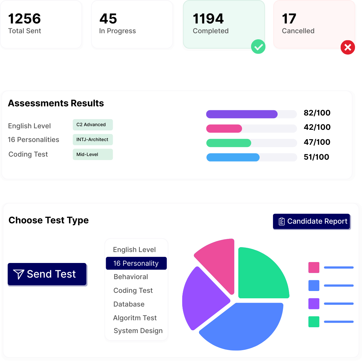 Evaluate skills, personality, and fit with ready-to-use tests that give you objective insights and help you make confident hiring decisions.
